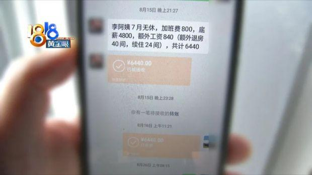 李大姐告诉记者,当初没签过合同,老板以微信转账的方式发放工资。聊天记录显示,王老板先后两次向李大姐微信转账,6月份1000块钱,7月份6440块钱。