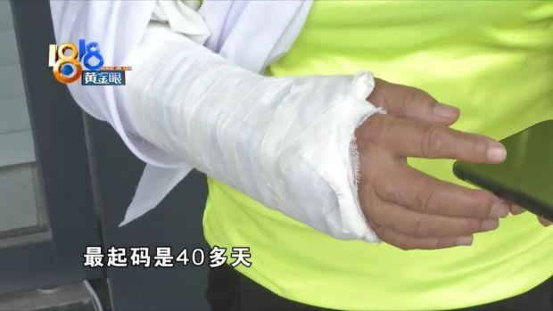 李大姐:“就从这里上来,我们每次这里上来都是推的,我不敢骑的,这个中间就这么宽。就是推到这个平台上来,要上来这个地方,我人就想坐上去,坐上去一不小心,往这个栏杆上一撞,撞到这个栏杆上,当时摔了,我手当时就肿了,现在就是还绑在这。(要绑多少天?)医生是说要绑40多天,最起码是40多天,骨头才会生起来。”