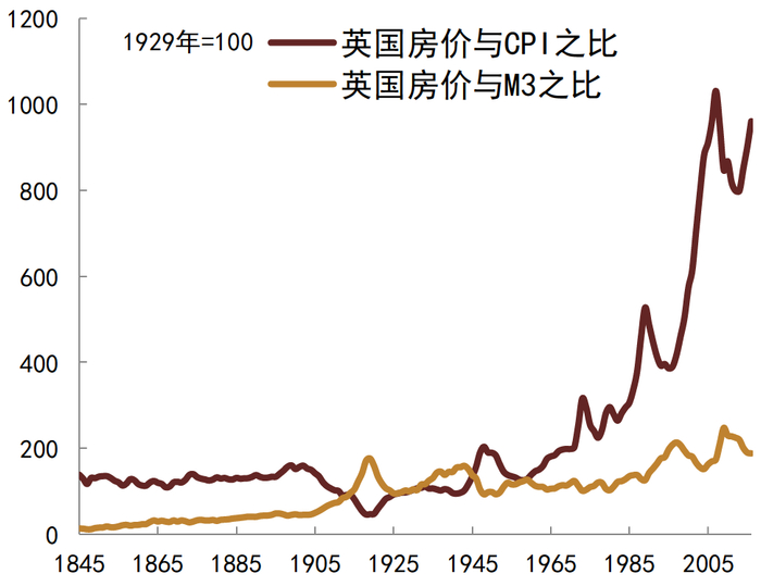 图表17:英国房价与CPI、M3之比(1845-2016)
