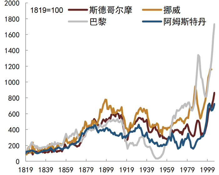 资料来源:Holmans 2005, CEIC, 中金公司研究部;注:2001年之前数据来自Holmans 2005(详见图表3注),2001年之后数据来自CEIC,受战争等因素影响20世纪20年代与30-40年代部分数据有统计缺失