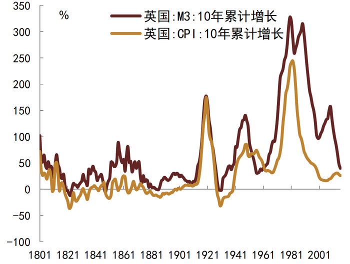 图表16:英国广义货币与CPI增速(1801-2016)
