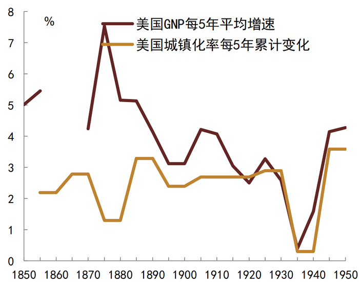 图表31:美国城镇化与经济增长(1850-1950)