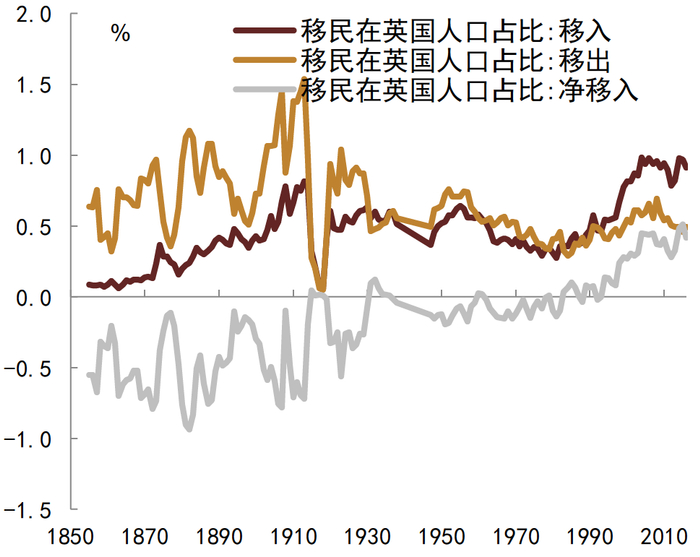 图表6:英国人口流入结构(1855-2016)