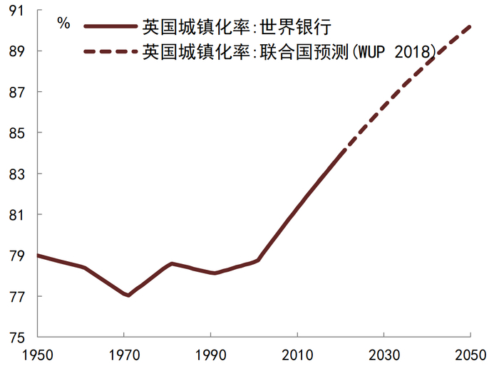 图表2:英国城镇化率(1950-2050E)