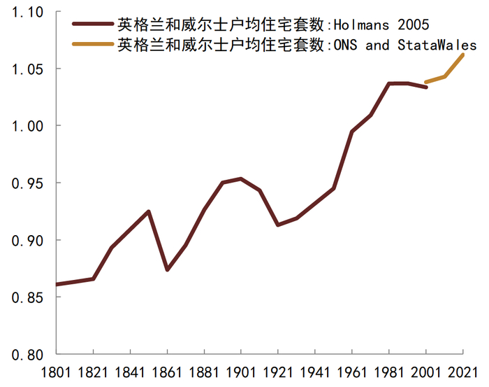 资料来源:Holmans 2005, ONS, StataWales, 中金公司研究部;注:2001-2021年数据来自ONS和StataWales