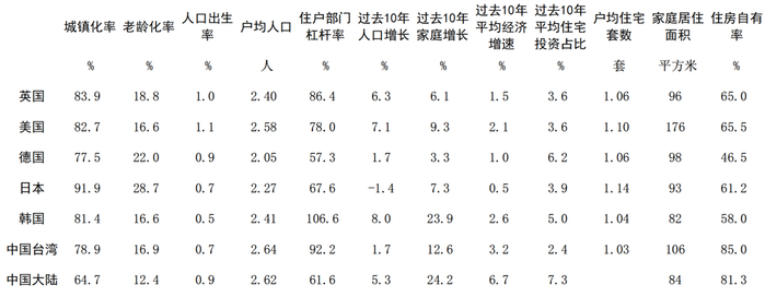 图表95:代表性经济体的人口、经济和住宅现状比较