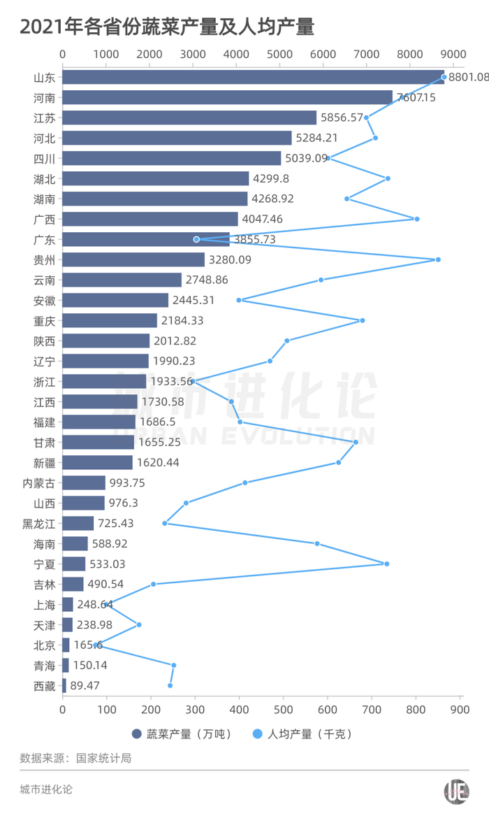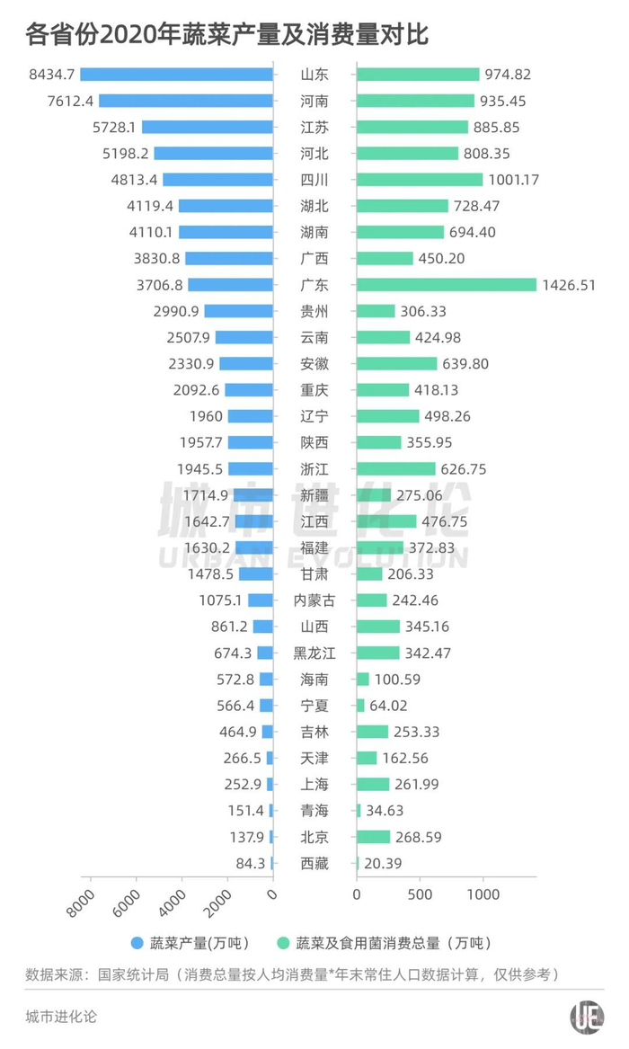 究竟,各地蔬菜产量到底能不能满足众多人口的消费需求?