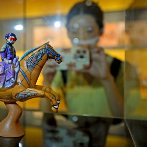 2022年9月2日,西安博物院内展出的一尊3D打印赛博朋克风唐三彩引来关注。它是利用图像采集及3D打印技术对西安博物院镇馆之宝——唐三彩腾空胡人骑马俑的“复制”,再结合年轻人喜欢的赛博机械风格,对文物进行了二度创作,最终呈现出一件融合古今、风格独特的“新文物”。