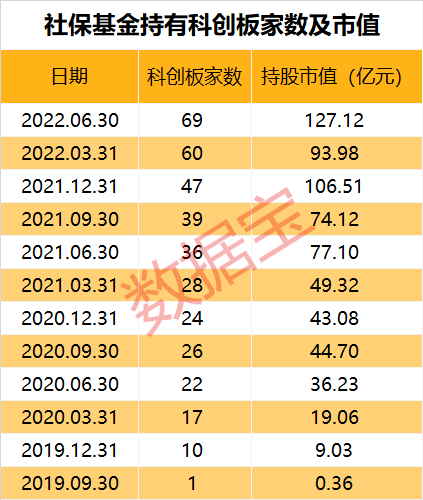 科创板开板三年来,社保基金对其投资力度逐渐提升。 半年报显示,社保基金最新持有69只科创板股票,持股总量1.5亿股,持股总市值127亿元,持有家数及持股市值均创历史新高。