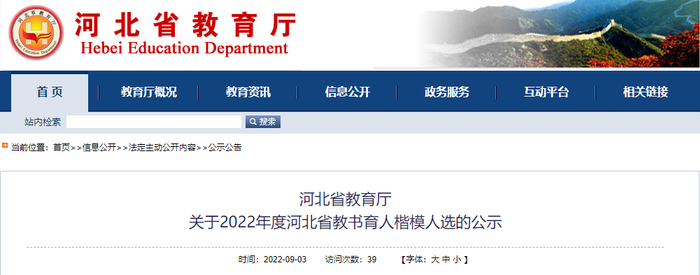 河北省教育厅关于2022年度河北省教书育人楷模人选的公示