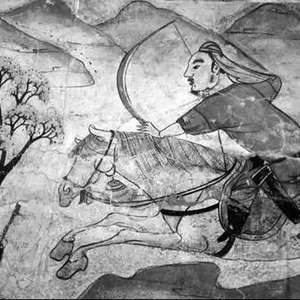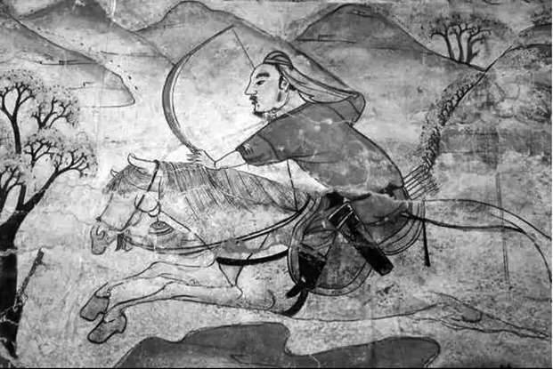 北朝壁画骑射场景。公元439年,北魏灭北凉,十六国时期结束,进入北朝
