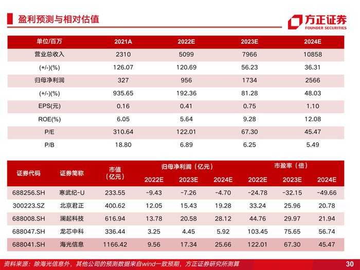盈利预测:预计2022-2024实现营收51.0/79.7/108.6亿元,归母净利润9.6/17.3/25.7亿元。首次覆盖,给予“推荐”评级。