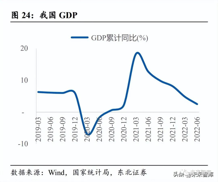 疫情冲击下,出口与固定资产投资表现较强韧性。因受疫情反复、国际形势紧张等 国内外不利因素影响,我国 2022 年上半年实现 GDP 增速仅 2.5%;社零同比下降 0.7%;出口同比增长 14.2%;房地产开发投资完成额下降 5.4%;固定资产投资完成 额同比增长 6.1%。固定资产投资中,基建投资完成额同比增长 7.1%,较 2021 年全 年 0.4%的同比增长明显改善。