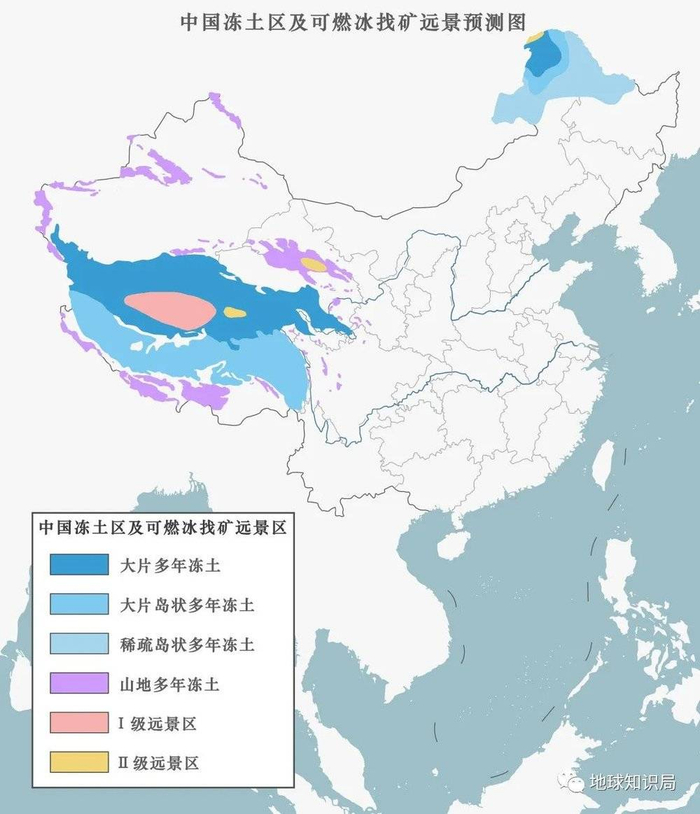 中国冻土区及可燃冰找矿远景预测图(参考:地质调查科普网 )