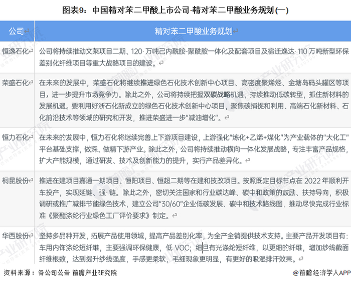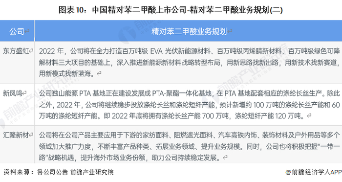 5、精对苯二甲酸行业上市公司精对苯二甲酸业务规划对比