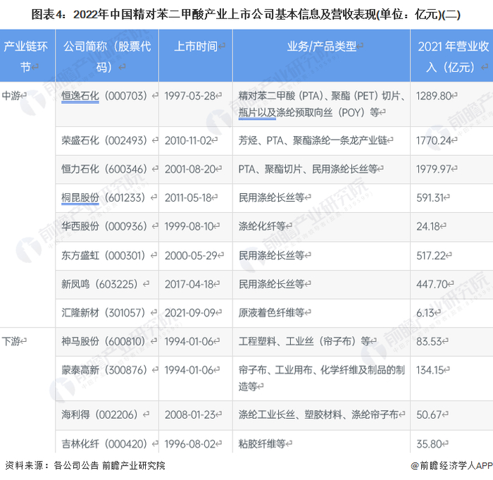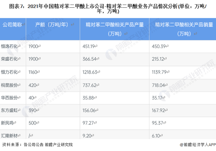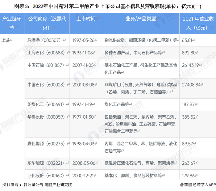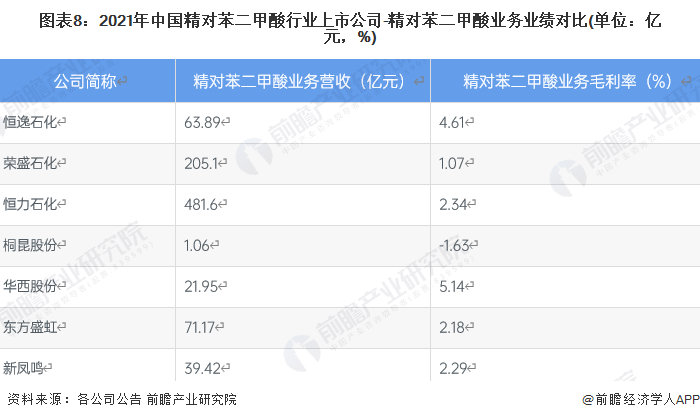 1、精对苯二甲酸产业上市公司汇总