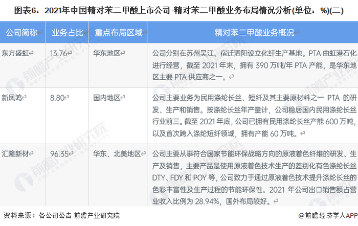 精对苯二甲酸行业的上市公司中,荣盛石化、汇隆新材、华西股份等公司业务占比较高,均在10%以上,从业务布局区域来看,大部分企业均集中于国内业务布局。