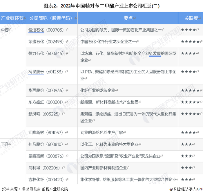 2、精对苯二甲酸行业上市公司业务布局对比