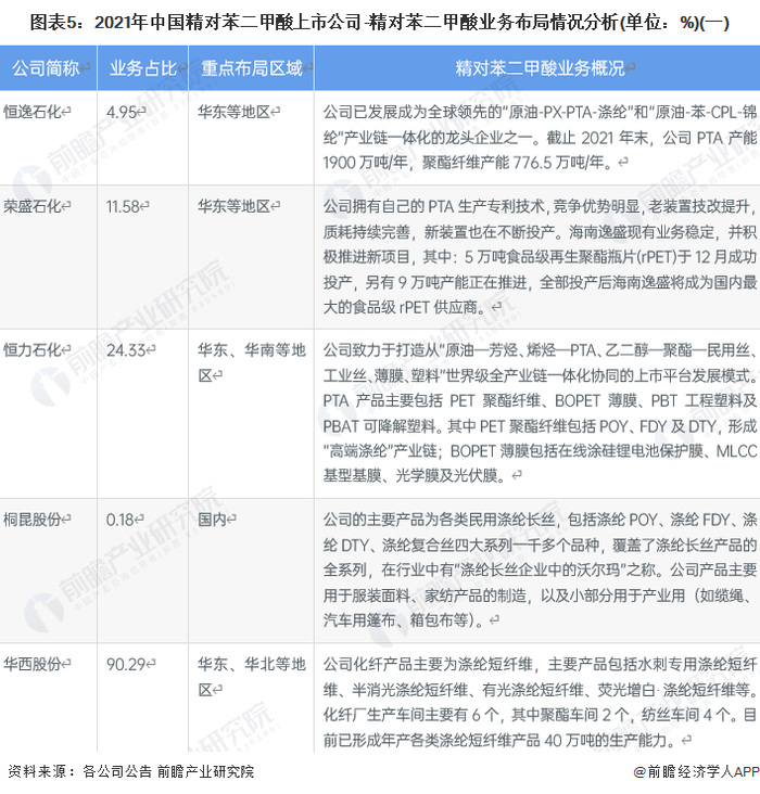 【最全】2022年中国精对苯二甲酸(PTA)行业上市公司全方位对比(附业务布局汇总、业绩对比、业务规划等)