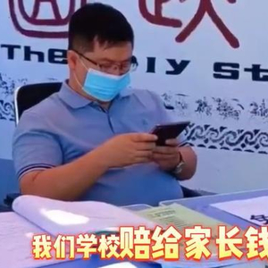 ▲9月3日,河北某学校在校门口摆放桌子贴“免费碎手机”标识,并在桌子上放着一把锤子。截图来自社交平台视频