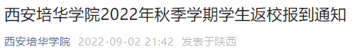 日前,西安培华学院发布2022年秋季学期学生返校报到通知。