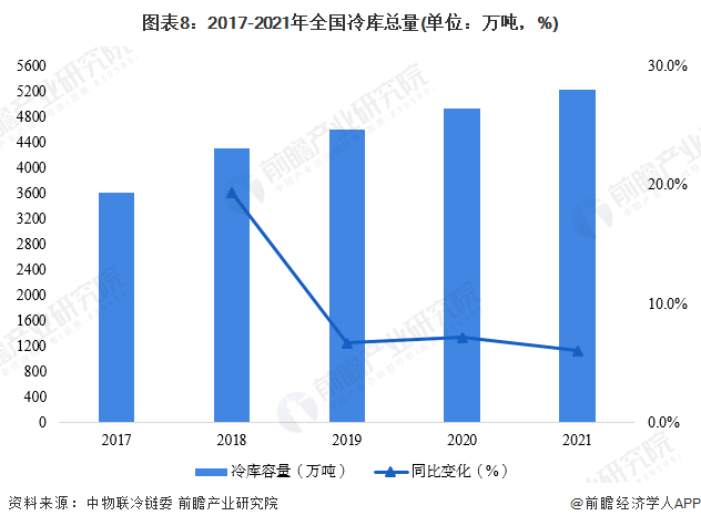 1、我国冷库总量年增长率保持在10%左右