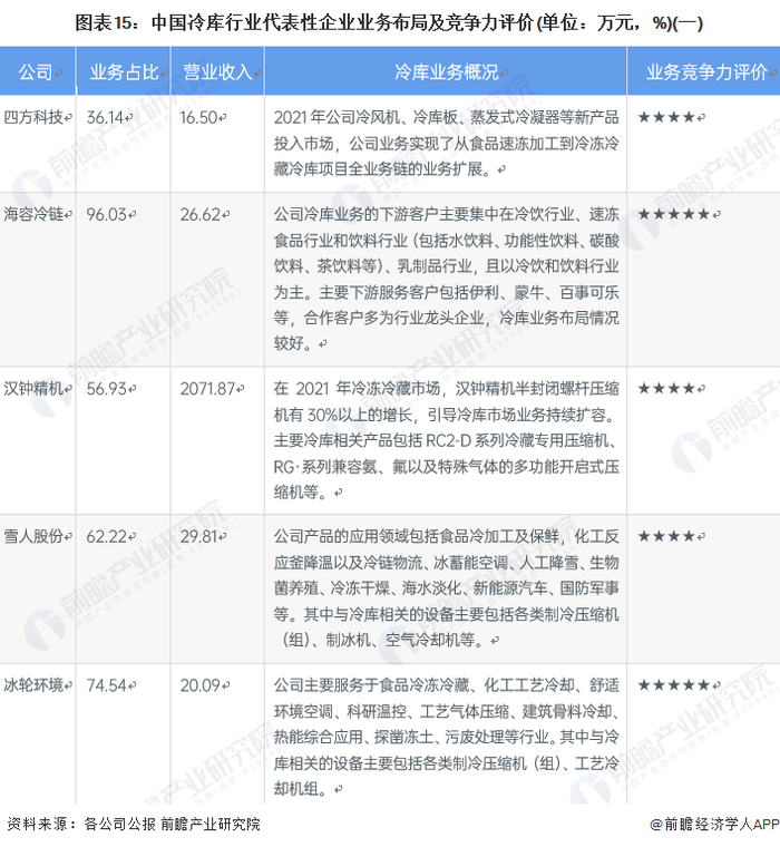行业主要上市公司:冰轮环境(000811);雪人股份(002639);海容冷链(603187)等