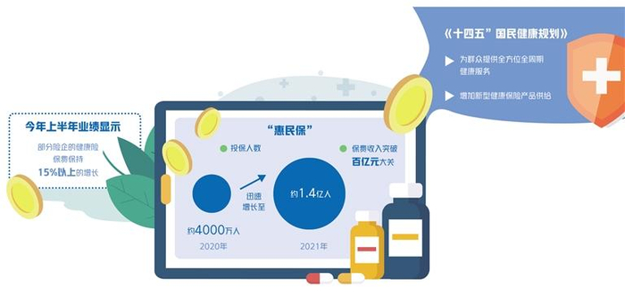 2020年,惠民保产品迎来上市爆发期。2021年5月份,中国银保监会发布《关于规范保险公司城市定制型商业医疗保险业务的通知》,引导惠民保市场规范化发展,各地政府开始积极参与惠民保项目。参加惠民保的人数由2020年的约4000万人迅速增长至2021年的约1.4亿人,保费收入也突破了百亿元大关。惠民保不仅价格实惠,而且进一步拓宽了覆盖范围,将高龄人群和罹患过重大疾病人群也纳入了保障范围。此外,惠民保在投保环节往往无需健康告知,投保条件非常宽松。