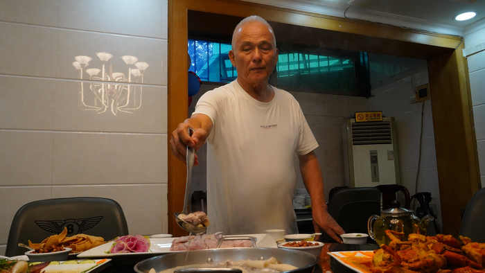 他说,过去生意最好的时候,店里坐得满满当当,门外还有人排队,一天要从海南运600个椰子和200只鸡。而疫情带来的影响是他开餐厅几十年以来最难过的一关,但他始终相信,这么多老店员一起努力,总会挺过去。