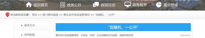 惠东县市场监督管理局 - 对冠名“科技”企业双随机定向抽查 - 抽查结果信息