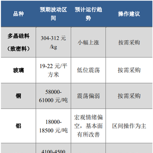 行情展望:预计硅料价格小幅上涨,价格参考区间:304-312元/kg。
