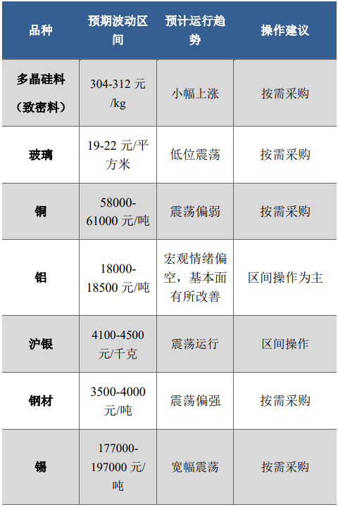 二、光伏产业原材料价格周度展望