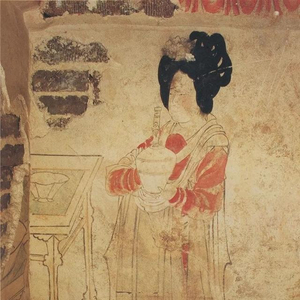 河北曲阳五代王处直墓壁画中,梳妆用具之间出现了一个蔷薇露瓶。