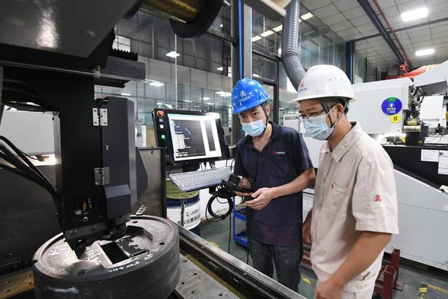 除了货物发送忙,厂区生产线也干得热火朝天。模具生产车间主任程泽铖在轰鸣的机器声中来回穿梭在各个工位,协调人员力量分配,检查操作标准和产品质量。“我们车间主要任务是生产铝型材挤压模具,是整个产线中非常重要的环节。如果滞后会影响生产进程,大家一点也不敢马虎。”