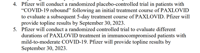 随着案例数量不断增加,今年8月,美国食品药品监督管理局(FDA)已要求辉瑞公司调查该药物的第二个五天疗程是否会阻止病毒复发,并且必须在2023年9月30日之前拿出第二疗程抗病毒药物随机对照试验的初步结果。
