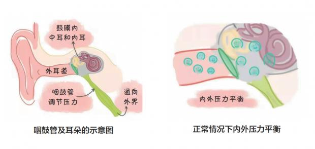 在解释这个病之前先和大家讲解一下重要的解剖结构——咽鼓管,就是那个连接耳朵与鼻子的管道。一般情况下,咽鼓管处于关闭状态,只有在我们做张口、吞咽、打呵欠等动作时,咽鼓管才会打开。咽鼓管的主要功能就是维持中耳腔与外界的压力平衡。咽鼓管还具备其他重要的生理功能,如防止鼻咽部分泌物及病原菌的逆行感染及防声作用;局部免疫防御作用;将中耳腔的分泌物引流至鼻咽部。