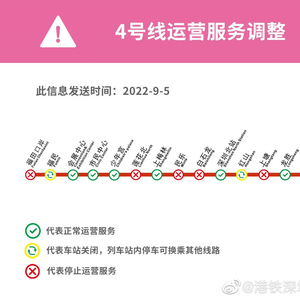 根据新冠疫情防控需要,2022年9月5日起,地铁4号线运营调整如下: