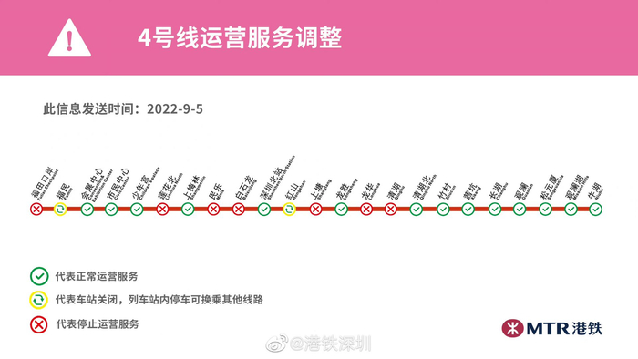9月5日起,深圳地铁4号线有这些运营调整→