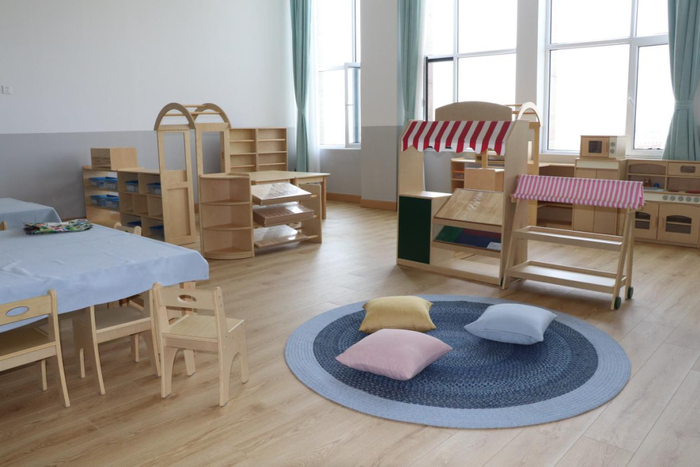当前,教室内各种玩具、教学设备已全部到位。学校整体设计从幼儿视角出发,处处展现以幼儿为主的园所文化,各类益智类玩具、互动类绘本极大地满足了幼儿探索自然的需求。为了让首批入园的小班新生尽快适应学校环境,公共空间还设置了不少温馨可爱的卡通装饰,既凸显了童趣,又给孩子们营造了一个轻松愉悦的成长环境。