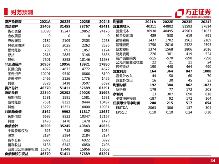 盈利预测:预计公司2022-2024 年实现营收448.0/515.9/576.1 亿元,归母净利润 2.2/5.2/6.5 亿元,给予“推荐”评级。