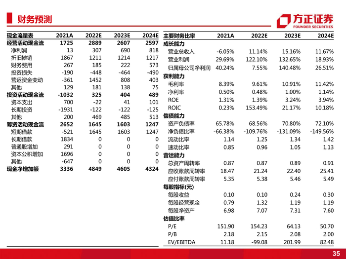 盈利预测:预计公司2022-2024年实现营收438.2/490.9/522.4亿元,归母净利润2.2/5.0/6.6亿元,给予“推荐”评级。