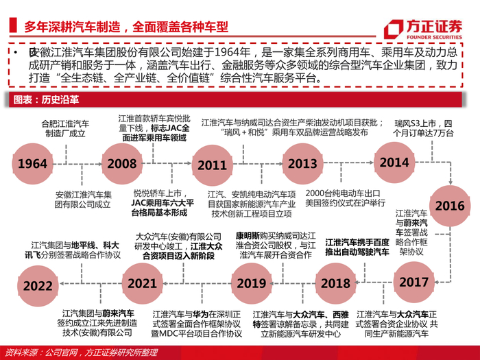 本文来自方正证券研究所2022年7月27日发布的报告《江淮汽车:探索中国汽车工业新模式》,欲了解具体内容,请阅读报告原文,陈杭S1220519110008 微信号:ForBetterChina