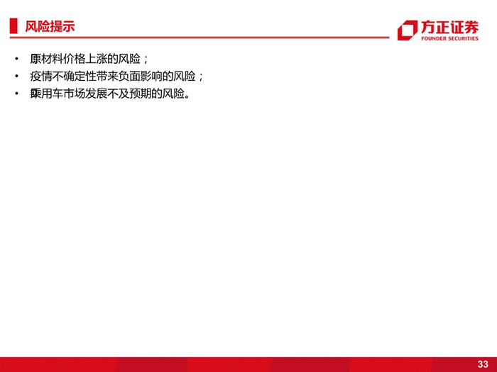 风险提示:原材料价格上涨的风险;疫情不确定性带来负面影响的风险;乘用车市场发展不及预期的风险。