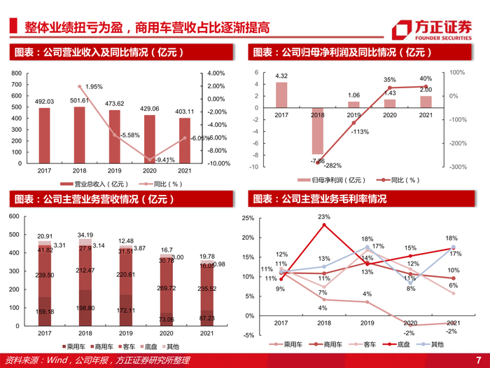 1、多年深耕传统汽车制造领域,业绩可观助力开拓新能源版图。公司建立几十年,受益政府支持,积累了丰富的行业资源,集全系列商用车、乘用车及动力总成研产销和服务于一体。近两年公司以其稳定产能及研发投入,实现业绩扭亏为盈,为迈入新能源领域奠定基础。