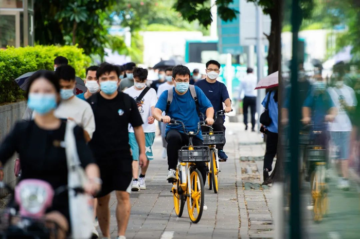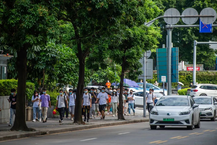 早高峰时段,科技园片区迎来上班人潮。赶着上班打卡的市民,脚步轻快,奔向各自的工作岗位。