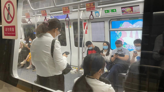 进入场站后,记者在车站和列车内都注意到,有工作人员手持提示牌,并随时提醒市民要全程佩戴好口罩,严格落实好100%测体温、100%亮健康绿码、100%戴口罩。