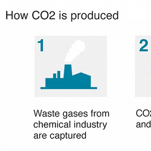 在作为原料或食品处理之前,多数食品企业会用一个复杂的七步净化过程,将其提纯以达到食品等级。制备二氧化碳的最有效方法是通过燃烧天然气分离碳原子和氢原子,氢原子与氮结合生成氨(终产品),碳原子则与氧结合产生二氧化碳(副产品),继而转卖给需要它的行业。