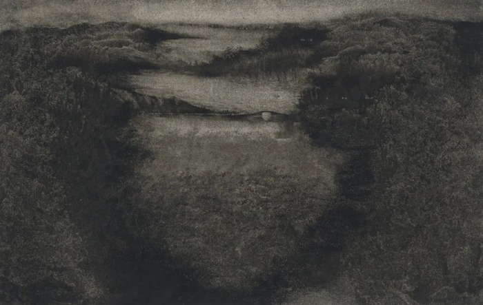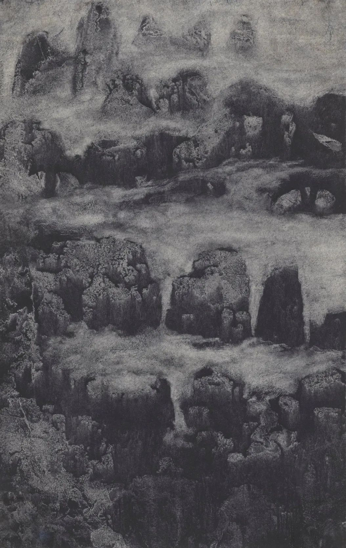 自纽约时期石版画系列,木心以偶发性抽象构局,走出林风眠影响。七十年代自创的转印画意境,渊静、旷远、幽邃、空灵,连接北宋山水的伟大记忆,而以小幅纸本出之。