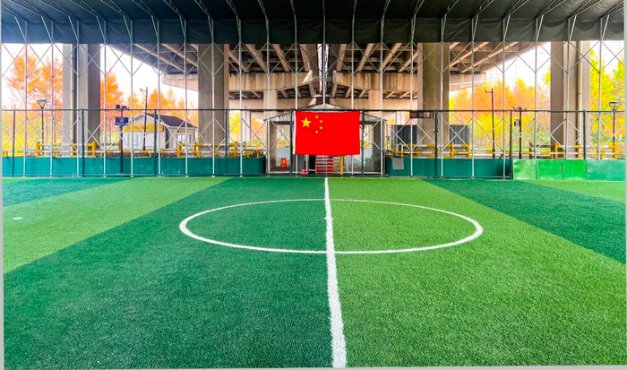 下沙大桥北侧的融E动足球运动公园,这里的两片五人制场地已经对外开放运营,采用周一免费开放,其余时间低收费开放的运营方式。