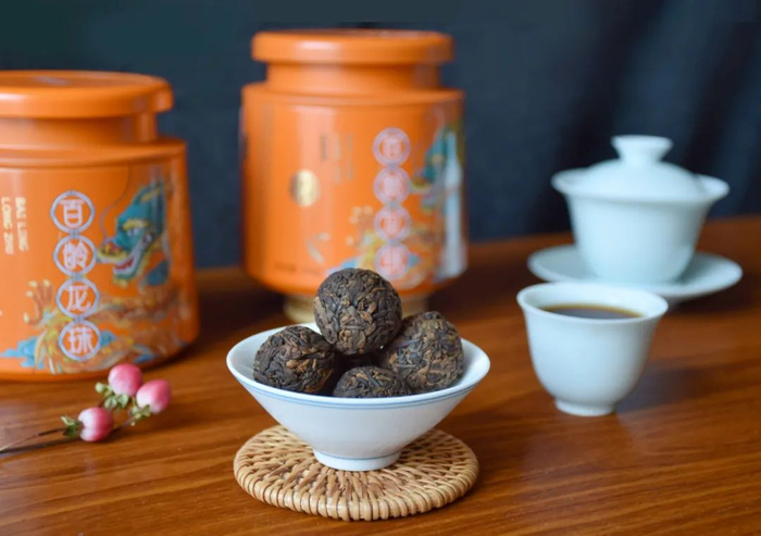 “龙珠”是将茶蒸软后搓成球的形态,完整地保留了“一芽两叶带一梗”。相比于茶叶和茶饼,龙珠更快达到口感柔和、绵长、不刺激的境界。